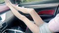 Model's young wife's alluring legs in stockings